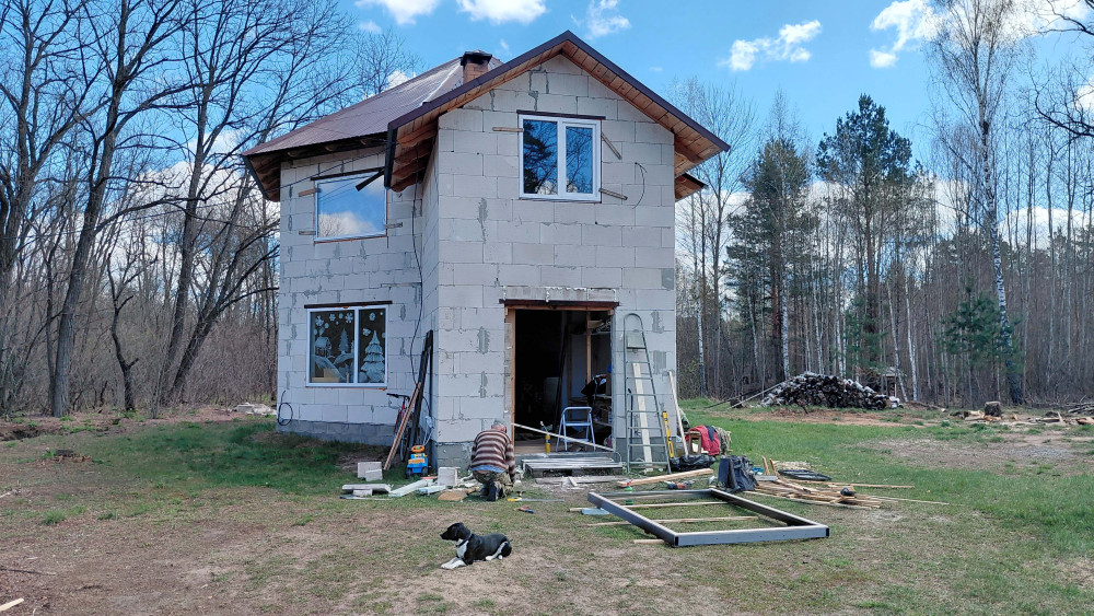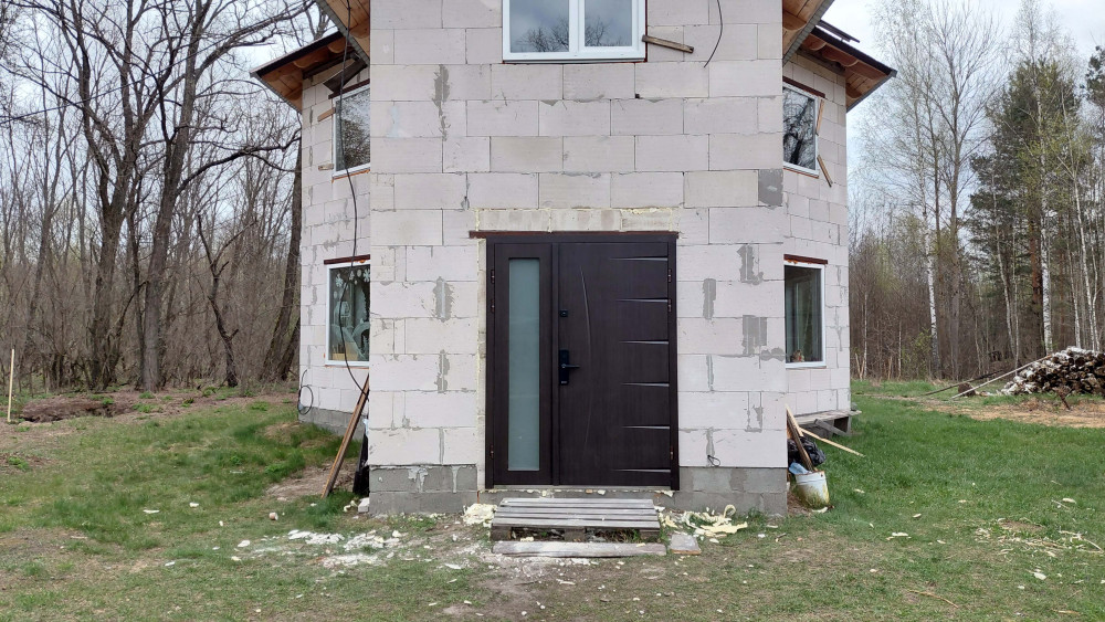 Мы решили, что этот процесс должен принести пользу не только тем кто будет пользоваться нашим домом, но и всем, кто строится на земле. Пока шел монтаж, мы успели снять полноценное обучающее видео по установке дверей в дом из газоблока.