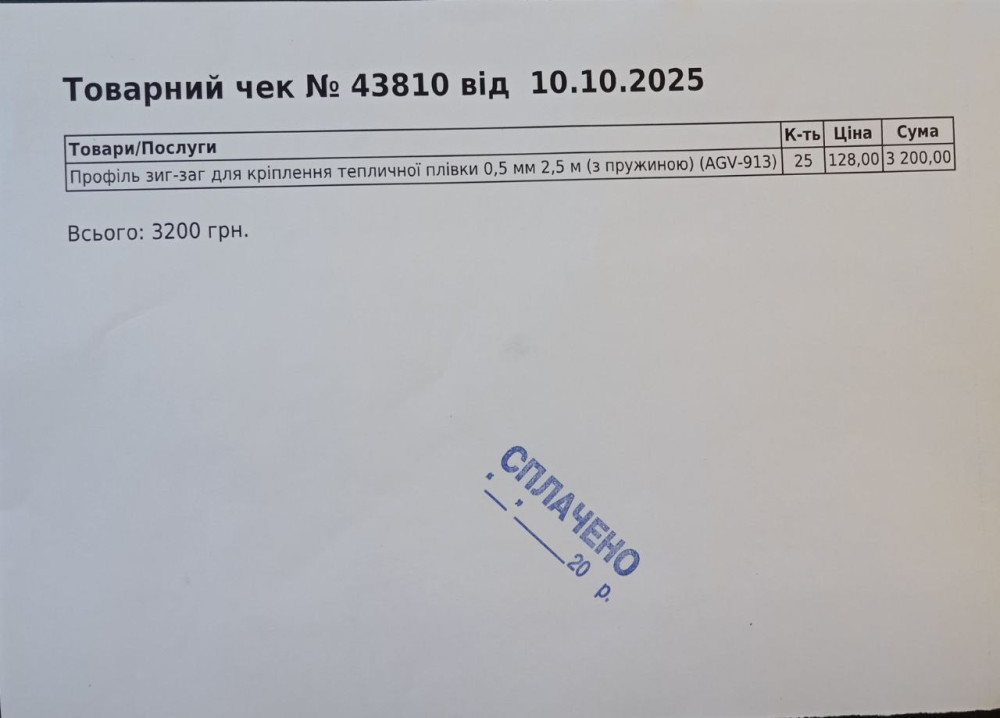 Вчора ми придбали та доставили профільну трубу (основна частина запланованих витрат), а також кріплення для тепличної плівки та ґрунт-фарбу для металу. Наразі витрати становлять 28364 грн, у тому числі: