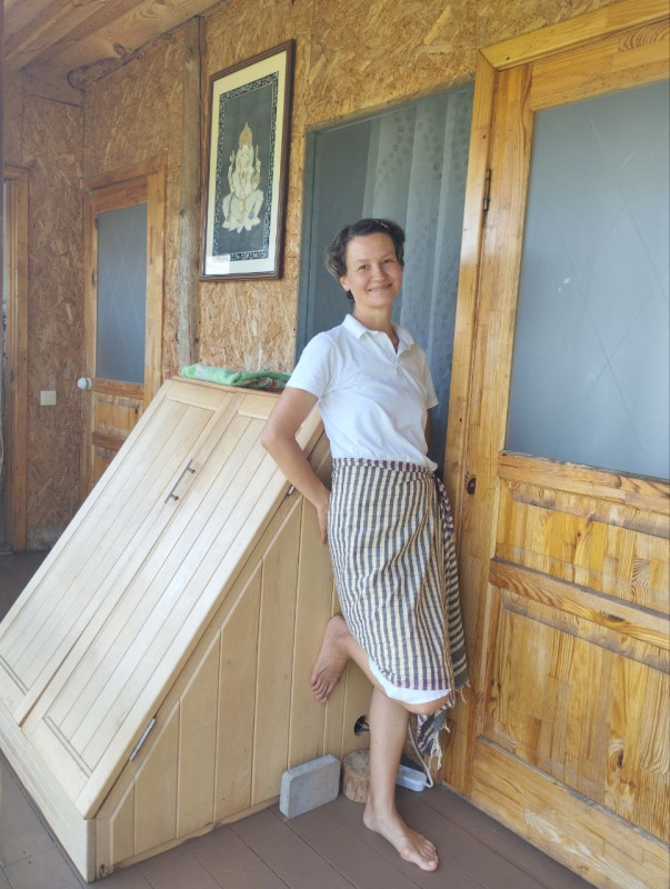 Цей досвід був для мене дуже цінним: я працювала все літо, поєднуючи практику масажу та роботу з бочкою, і зрозуміла, як важливо мати таку можливість і у своєму Помісті.